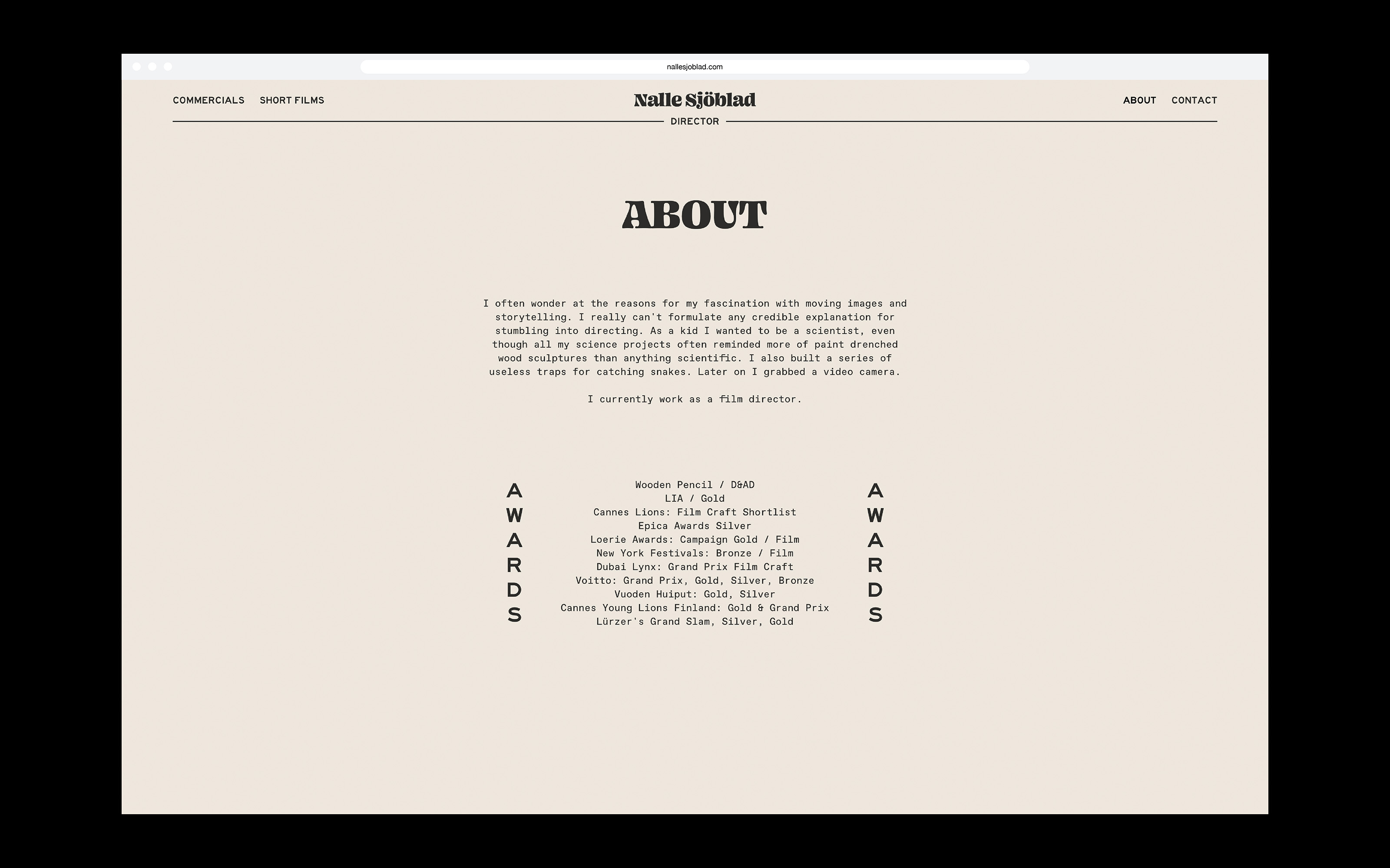 Website & logo design for an award-winning film director